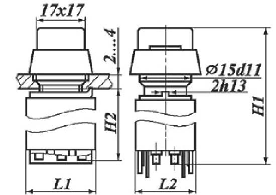 П2КН-2В переключатель кнопочный в том числе со световой индикацией, применяется для коммутации электрических цепей постоянного и переменного тока в радиоэлектронной аппаратуре. Климатическое исполнение В.