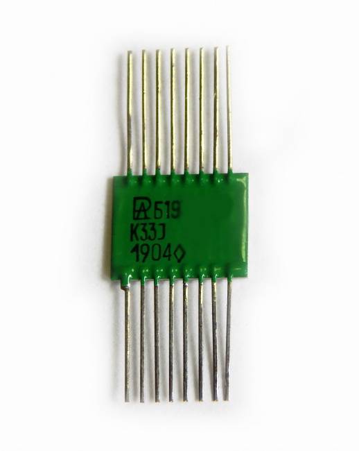 Б19М-3-1 36 блок резисторов монолитный с планарными выводами. Предназначен для работы в электрических цепях постоянного, переменного токов и в импульсных режимах эксплуатации во всех климатических районах (исполнение В).