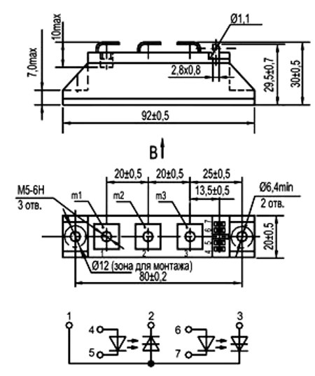 Обозначение типономинала и схемы соединения оптотиристоров приводится на корпусе.