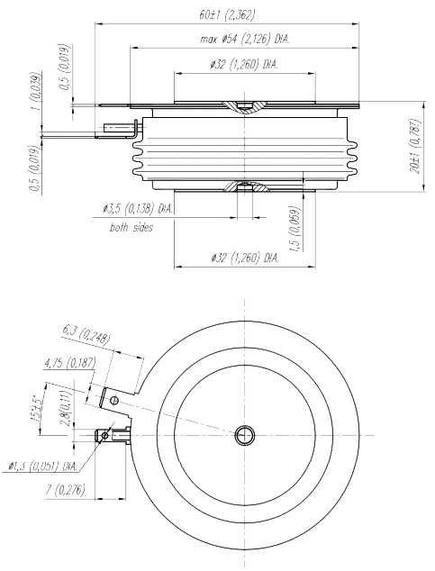 Масса тиристора не более 110 г.