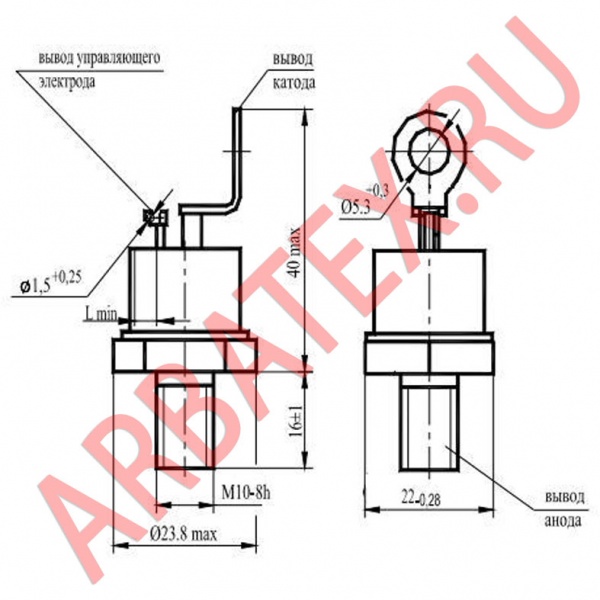 Масса тиристора не более 48 г.