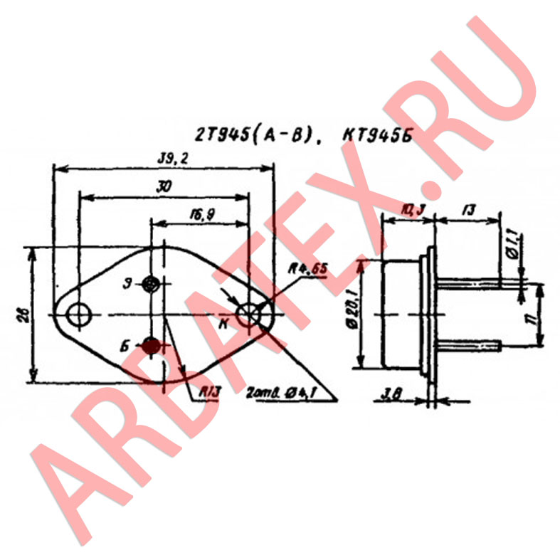 Транзисторы 2Т945А , 2Т945Б, 2Т945В, КТ945Б выпускаются в металлическом корпусе